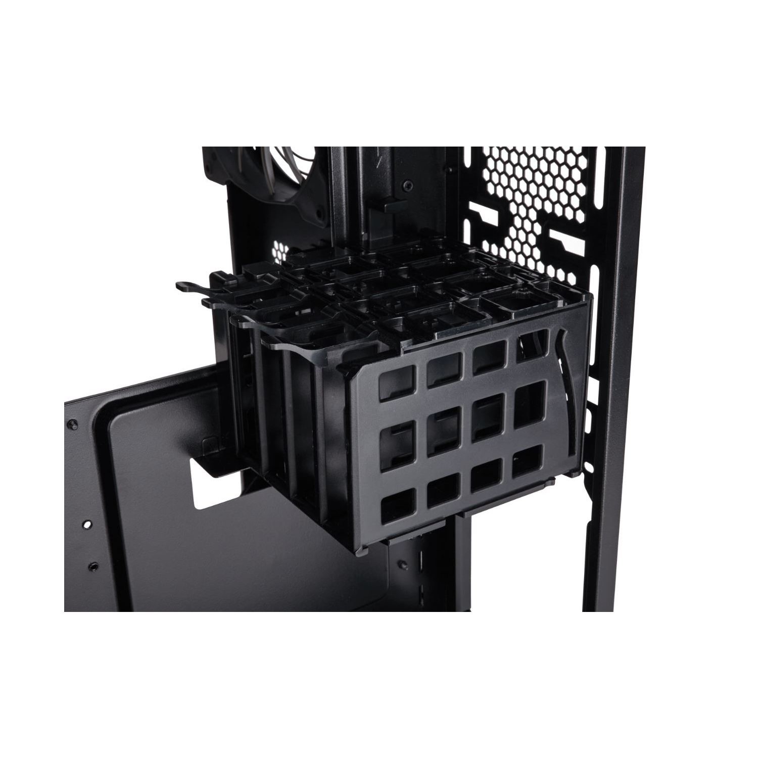 Offers massive internal volume by moving the power supply, SSD and optical drives into a separate chamber.