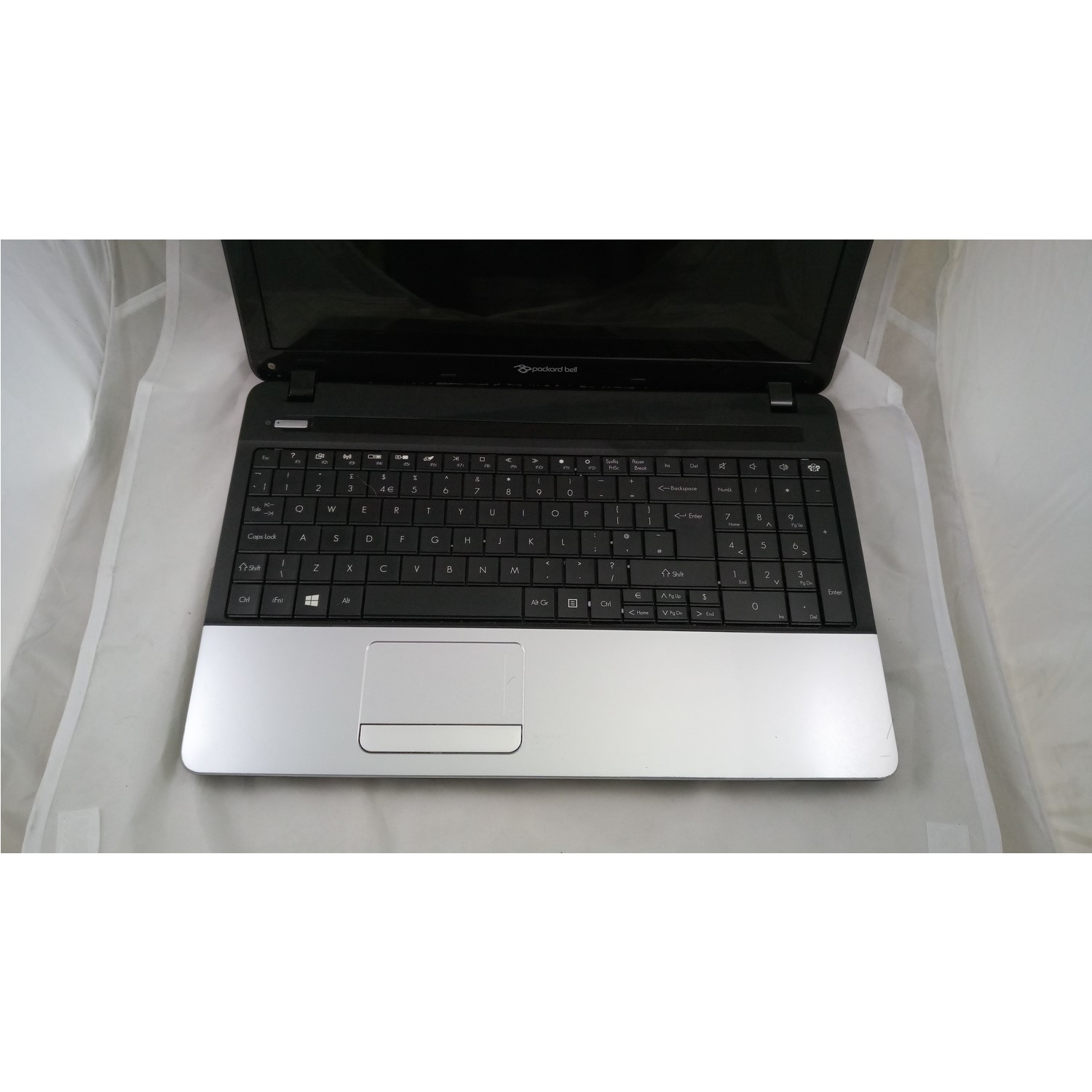 Heavy scratches on lid, missing packard bell logo on lid, little scratches on screen, wear on keyboard