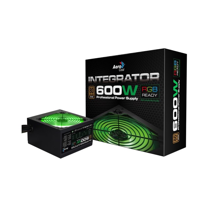 Aerocool Integrator 600W RGB PSU 12cm Black Fan Active PFC TW Caps UK Cable