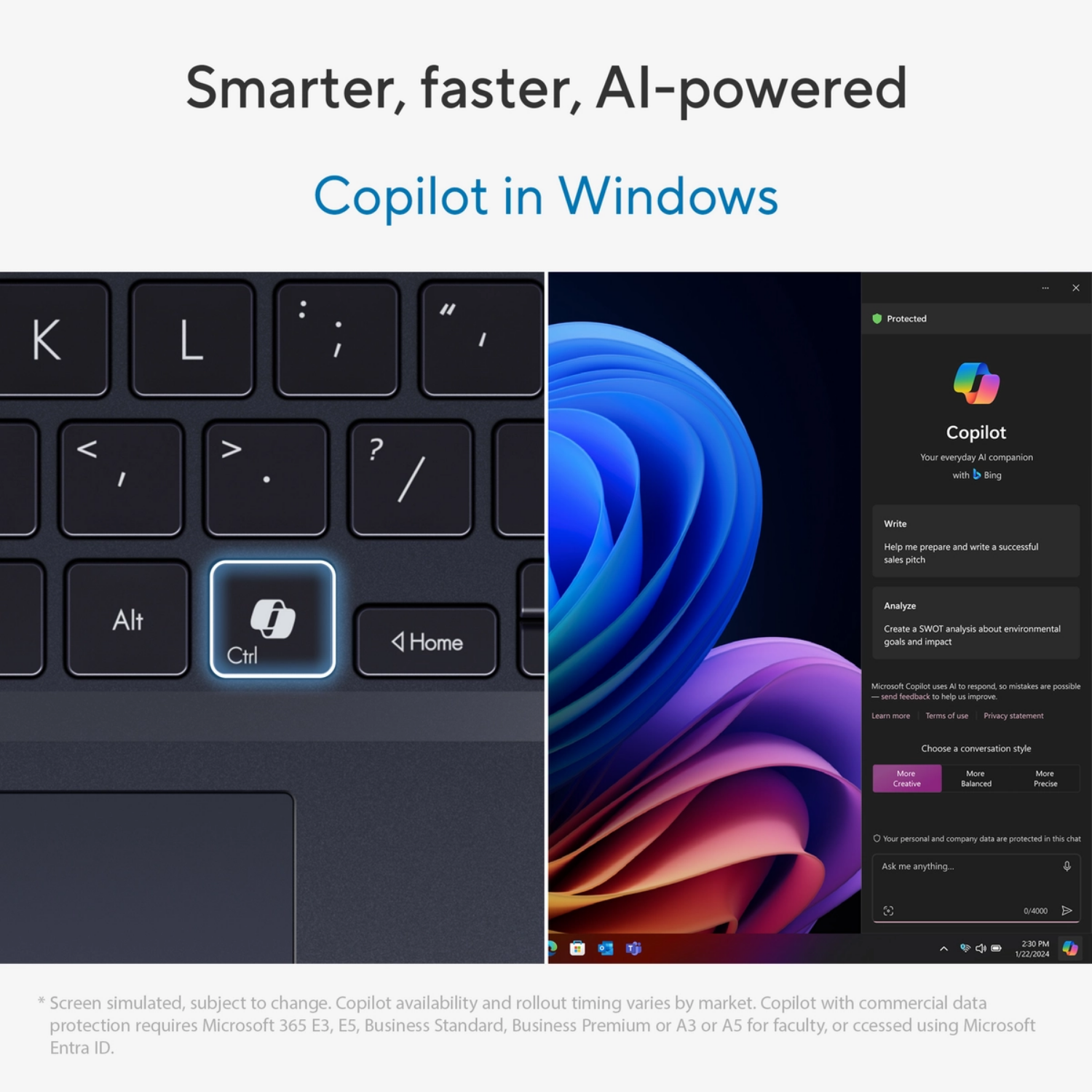 Windows 11 Pro features advanced tools and security enhancements to support professional workflows. NumberPad 2.0 integrates a numeric keypad into the touchpad for enhanced productivity.