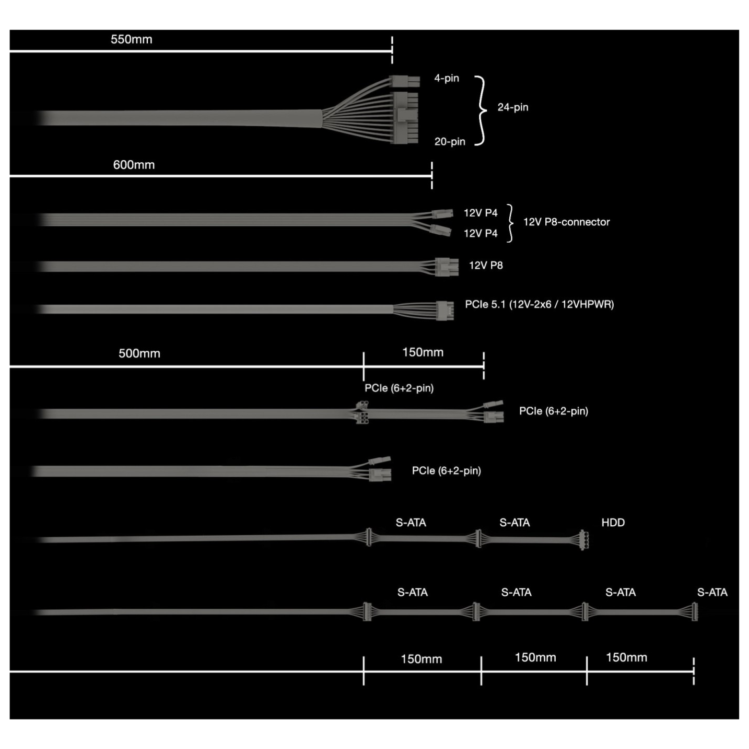 - ATX 3.1 PSU with full support for PCIe 5.1 GPUs and GPUs with 6+2 pin connectors