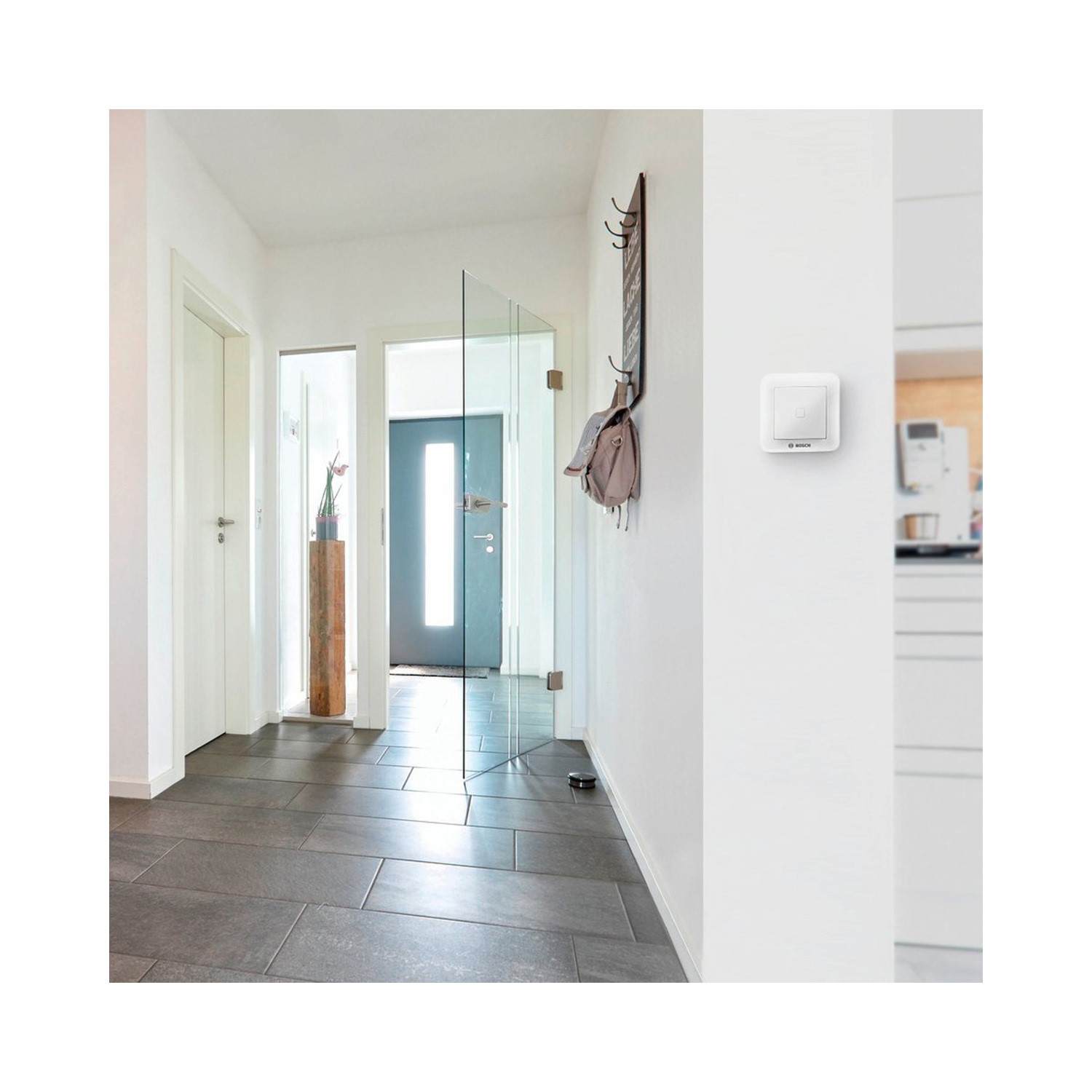 Now it is even easier to control your Smart Home System at the press of a button with the Universal Switch. The discreet switches can be assigned up to four different functions of your choice and used by all Smart Home regular users and guests, with no need for a smartphone or tablet. This simplifies repetitive tasks. Mount the Universal Switch next to the door and trigger the "Leaving home" scenario at the press of a button.