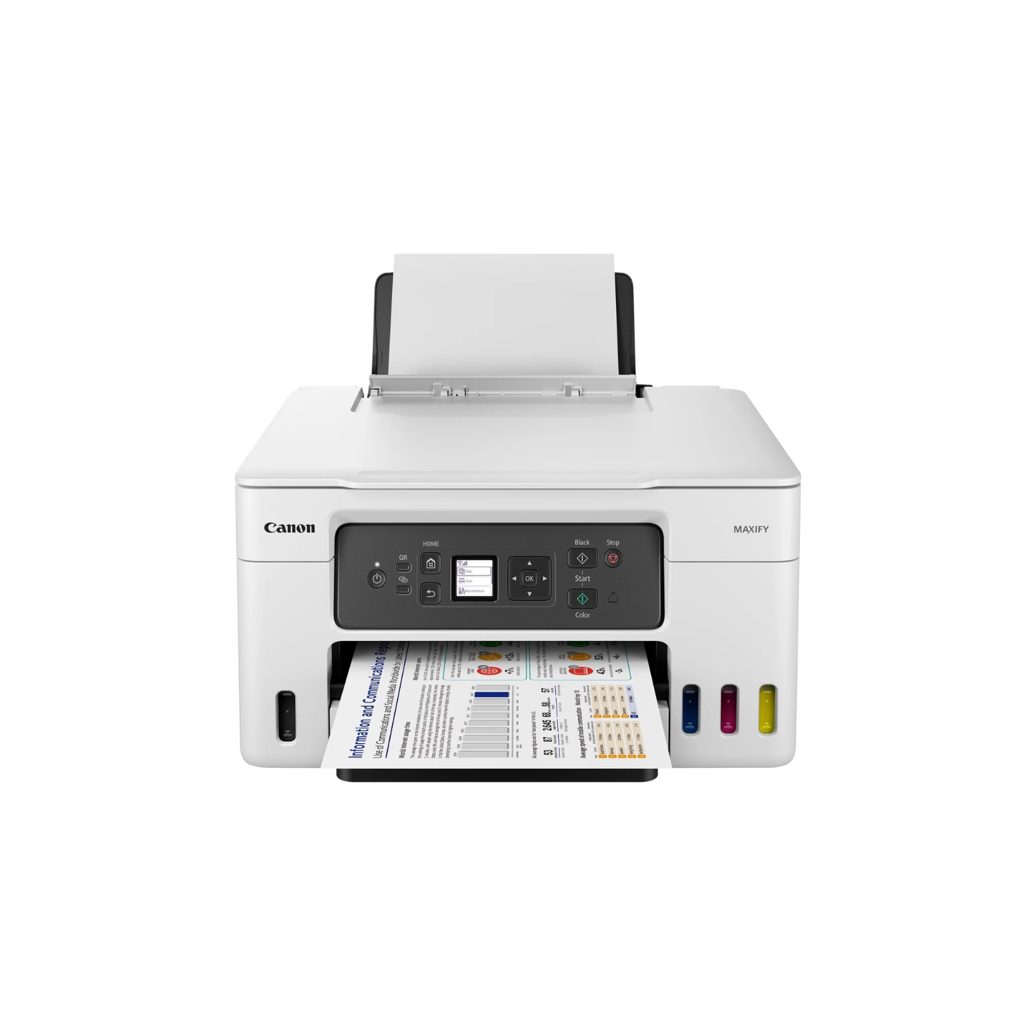 Despite its powerful functionality, the MAXIFY GX3050 maintains a compact footprint that fits neatly into small offices or home workspaces. Its clean, professional design blends easily into office environments while delivering dependable performance for daily business needs.