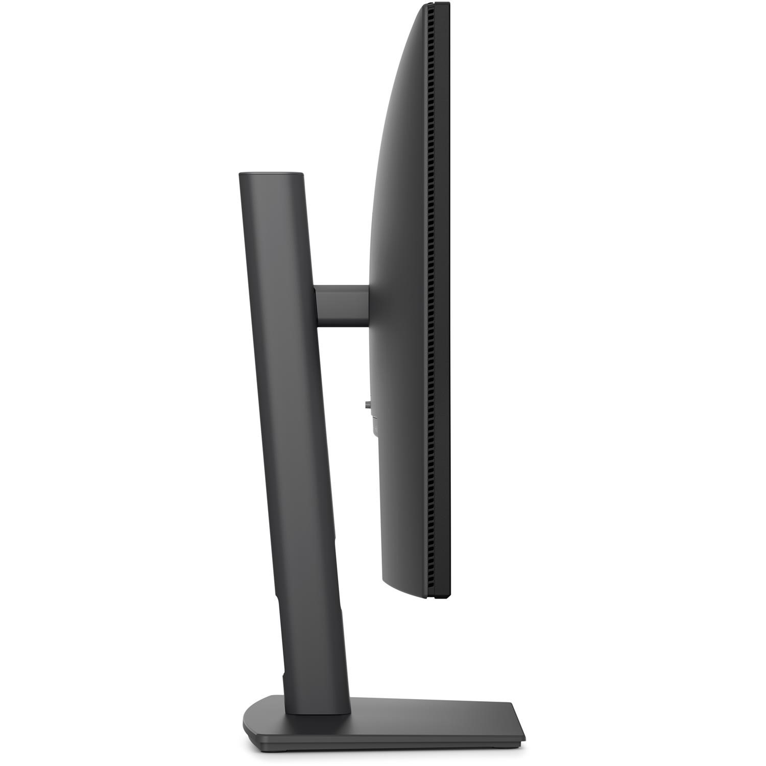 The monitor includes ergonomic stand adjustments such as height, tilt, swivel, and pivot functionality. This allows users to customise their viewing position for improved comfort and posture, reducing strain during long working sessions and enhancing overall workplace ergonomics.