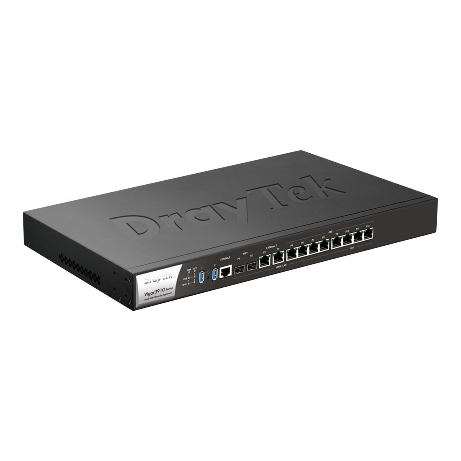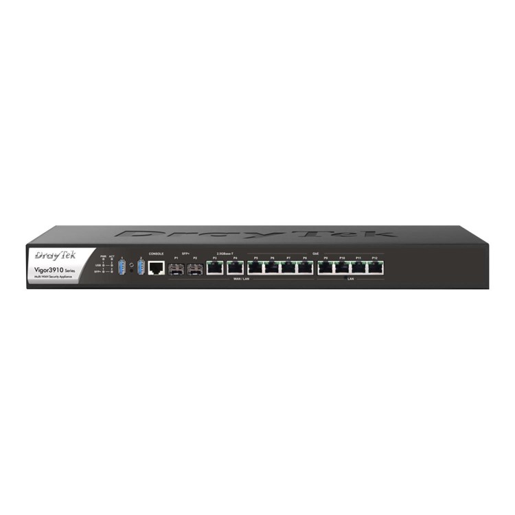 The Vigor 3910 features 12 physical ports in total, with 8 ports that can be switched between LAN and WAN usage to fit your network requirements, with many combinations being possible: