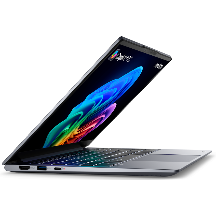 The 14 inch 2.8K IPS display is a visual highlight. With 2880 × 1800 resolution, a 120 Hz refresh rate, 400 nits brightness, and 100% sRGB colour accuracy, it produces vivid, razor-sharp detail in any environment. Ultra-narrow bezels and a 16:10 aspect ratio provide more space to work and create, while keeping the overall form elegant and compact. Supporting the experience are 16 GB of LPDDR5X RAM and a 512 GB PCIe SSD. This means faster start-up times, smooth multitasking, and instant responsiveness. You can open, save, and manage files without delay, keeping your flow uninterrupted.