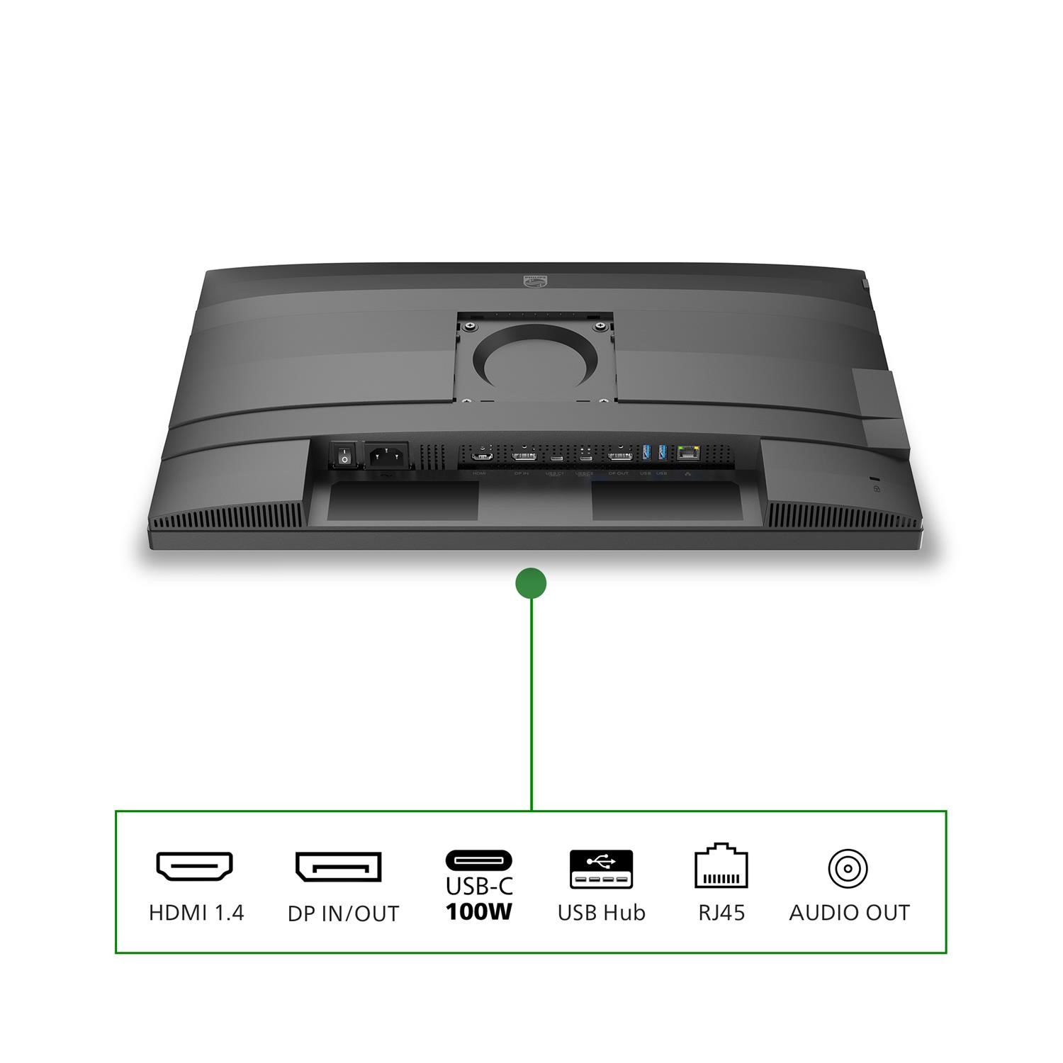 Staying connected is effortless with a comprehensive range of ports, including HDMI and DisplayPort for high-quality digital video and audio. The monitor also features built-in stereo speakers, providing convenient audio for video calls and multimedia without the need for external hardware. This streamlined setup ensures your desk remains functional and free from unnecessary peripherals, allowing you to get straight to work.