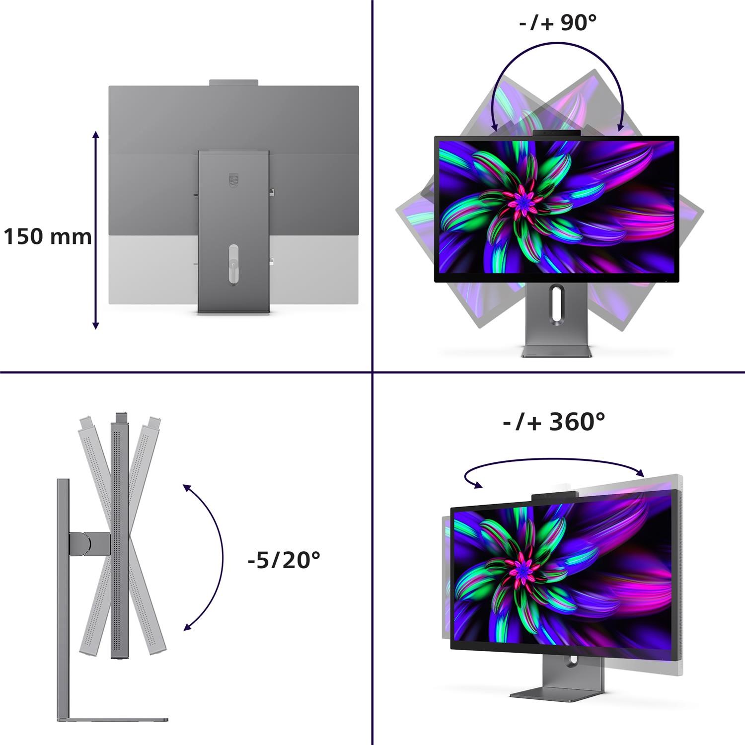 • Fully Adjustable Stand: Easily adjust height, tilt and swivel for comfort