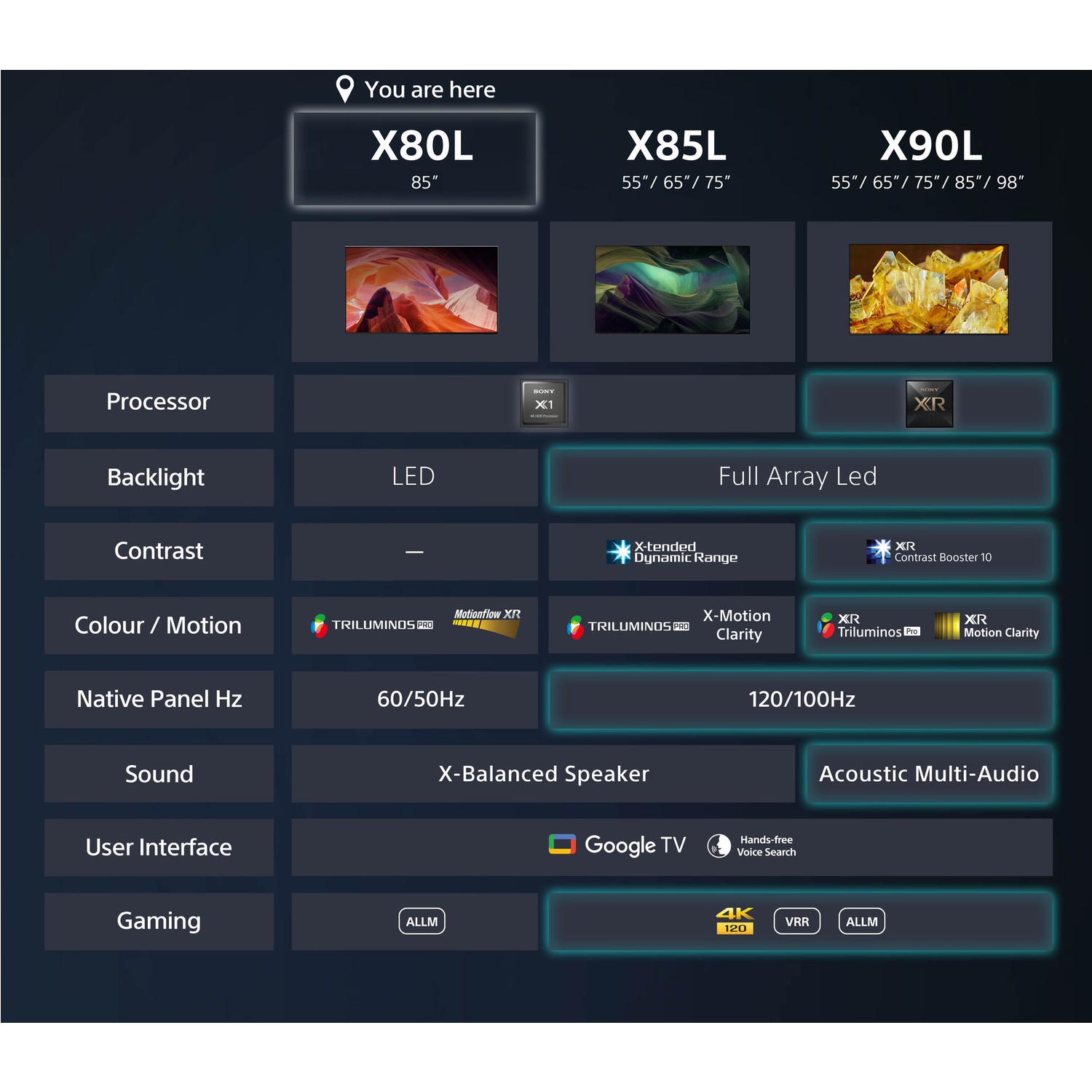 Featuring our ultra-wide Triluminos Pro colour palette, you'll see shades and hues on the X80L that you won't find on other TVs.