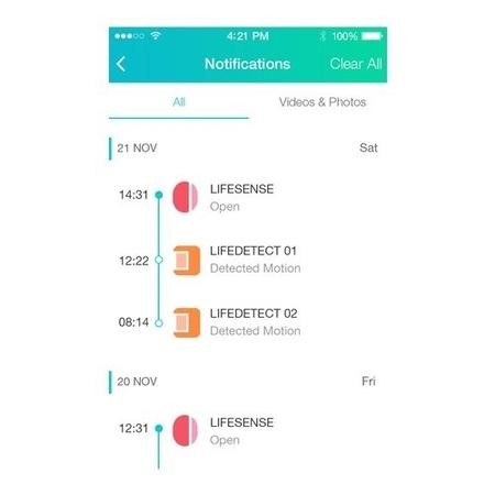 LIFECONNECT home bridge connects with the home gateway and links all the smart devices, so LIFECAM interacts with signals from LIFESENSE and LIFEDETECT. It allows products using different protocols (WiFi, ZigBee and AllSeen) to interact with each other. The application is available both for iOS 8.0+ and Android 4.0+ smartphones.